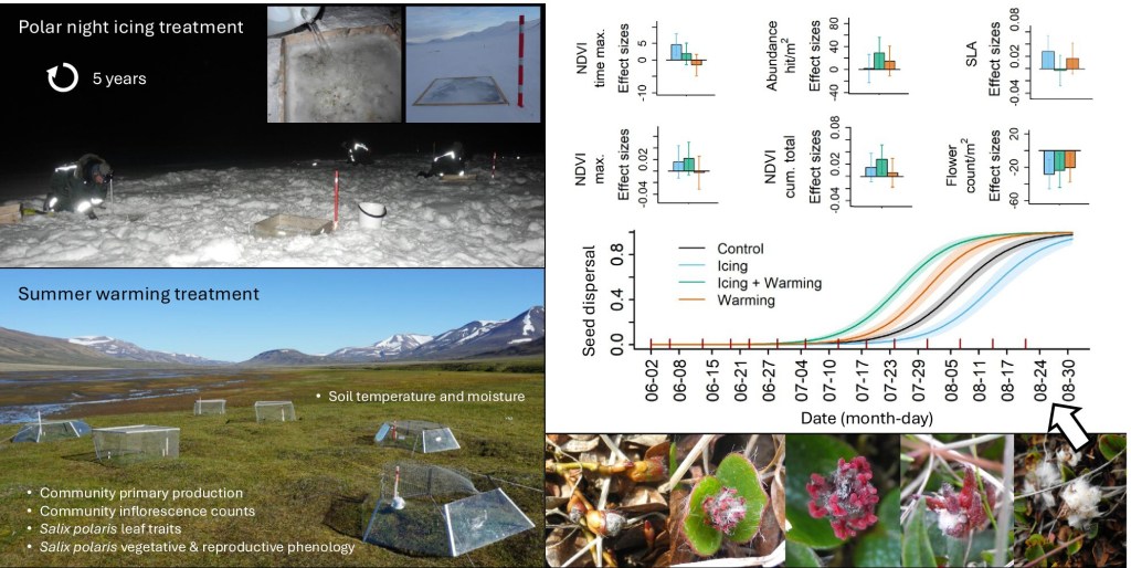 Le Moullec, M. et al. (2026). Towards rainy high Arctic winters: How experimental icing and summer warming affect tundra plant phenology, productivity and reproduction. Journal of Ecology: 114(1), e70234.
